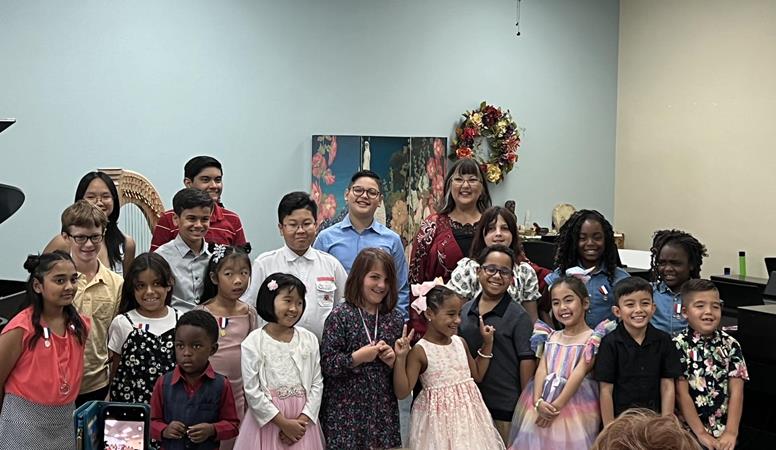 After relocating to Dallas, Minda has participated in Cindy Horstman's jazz ensemble at Brookhaven College and is a lifetime member of the American Harp Society and the AHS of Dallas. Minda has been an annual harp exhibitor at TMEA and was a speaker at the Annual Texas Music Educators Association Convention 2024 with Juan Riveros on, "Introducing Harp to Your Mariachi Program." She is on the board of the Garland Music Teachers Association and has been the GMTA Elementary Piano Ensemble Director at the Annual TMTA State Convention since 2024. She performs regularly at special events and memorial services and continues to find joy in sharing her love of music through both mariachi harp performance and teaching.