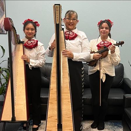 After relocating to Dallas, Minda has participated in Cindy Horstman's jazz ensemble at Brookhaven College and is a lifetime member of the American Harp Society and the AHS of Dallas. Minda has been an annual harp exhibitor at TMEA and was a speaker at the Annual Texas Music Educators Association Convention 2024 with Juan Riveros on, "Introducing Harp to Your Mariachi Program." She is on the board of the Garland Music Teachers Association and has been the GMTA Elementary Piano Ensemble Director at the Annual TMTA State Convention since 2024. She performs regularly at special events and memorial services and continues to find joy in sharing her love of music through both mariachi harp performance and teaching.
